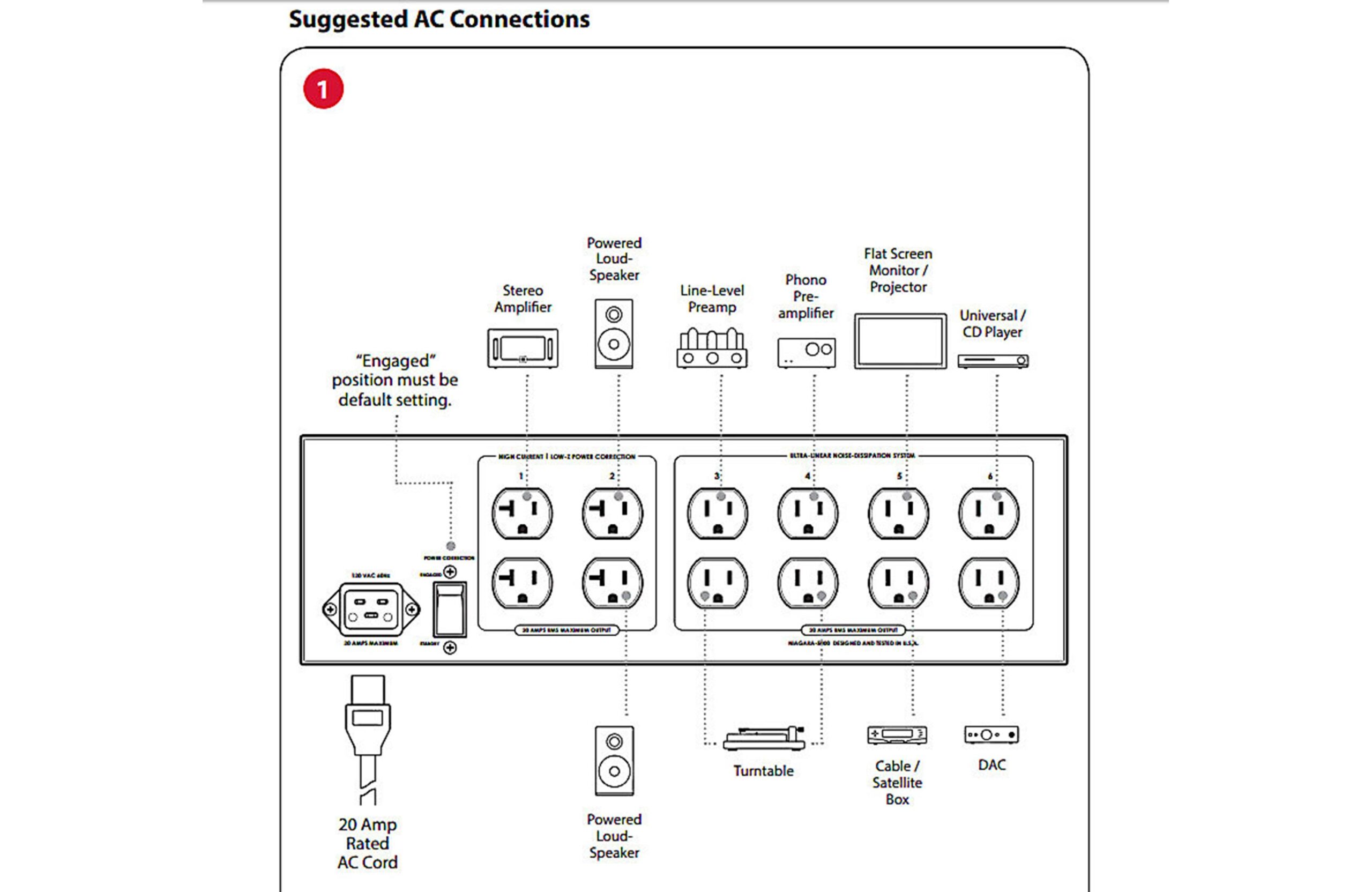 • 8 Ultra-Linear Filtered/Ground Noise Dissipated outlets for connecting source components