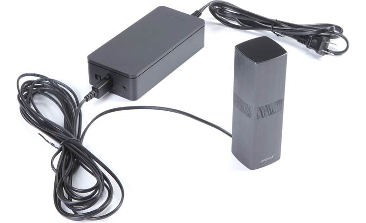 These speakers receive audio signals wirelessly, but there are still a couple of cables to connect. You don’t have to run any wires from the front to the back of your TV room, because the speakers link up wirelessly with your sound bar. They do that via the included wireless receiver modules, which must be connected to AC power. Then you attach the receiver modules to the left and right rear speakers with the included speaker wire.