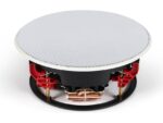 In-Ceiling Installation:Â The B&W CCM663RD requires a round cutout and is secured in the ceiling via the included mounting frame with integrated “QuickDogs” spring-loaded clamps that tighten using Phillips-head screws. The cutout will need to measure 8″ (diameter) x 3.625″ (depth). Make sure there is a least 0.75″ of clearance around the cutout opening for the integrated “QuickDogs” clamps. The mounting clamps will accommodate 0.25″ to 1″ thick drywall.