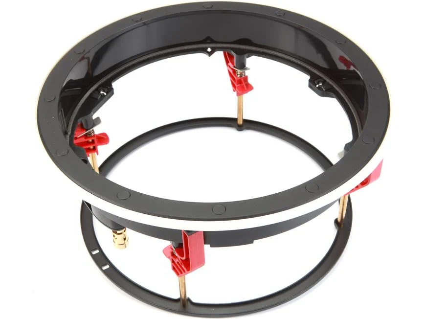 In-Ceiling Installation:Â The B&W CCM682 requires a round cutout and is secured in the ceiling via the included mounting frame with integrated “QuickDogs” spring-loaded clamps that tighten using phillips-head screws. The cutout will need to measure 9.8125″ (diameter) x 5.25″ (depth). Make sure there is a least 0.75″ of clearance around the cutout opening for the integrated “QuickDogs” clamps. The mounting clamps will accommodate 0.25″ to 1″ thick drywall.
