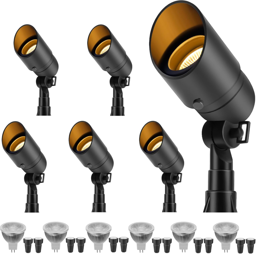 Gardencoin Low Voltage Landscape Spotlight, 12V LED Outdoor Landscape Lighting, Landscape Spot Lights Wired for Garden and Yard, Aluminum Up Lighting Fixture with 5W MR16 Replaceable Bulb (6 Pack)