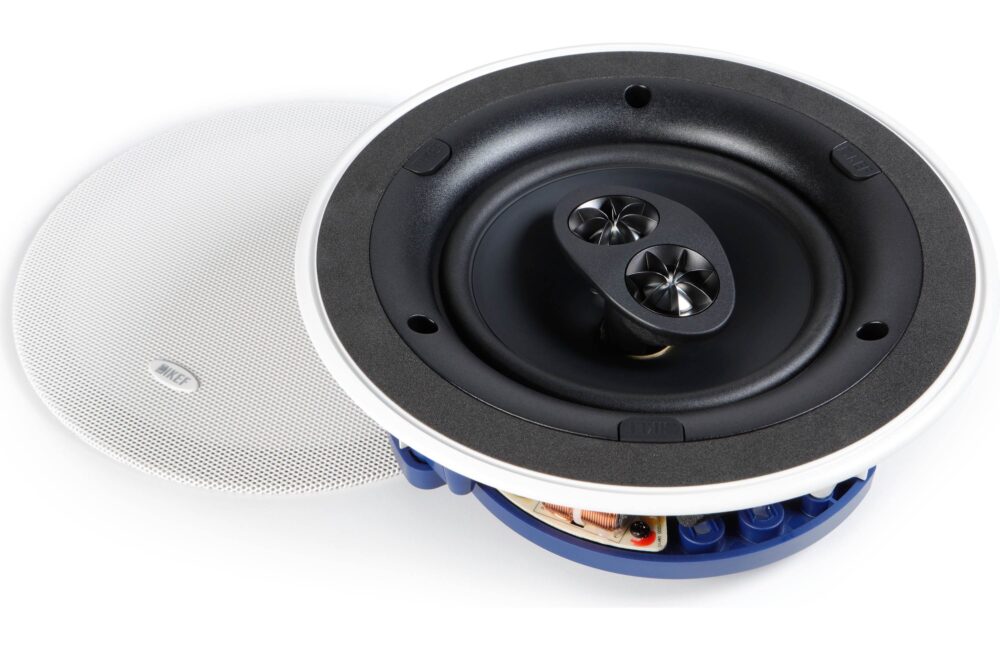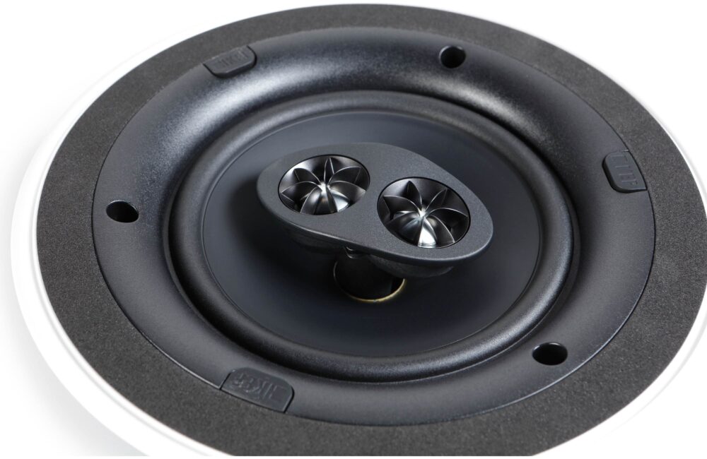 KEF’s clever Ci160CRds uses a dual-tweeter design to deliver the complete stereo mix from a single speaker. It’s an ideal solution for small spaces like entryways and hallways where there really isn’t enough room to install two separate speakers. KEF’s simple and ingenious screw-down clamping system includes moisture-resistant fixings so you can place this speaker in a bathroom or even under eaves.