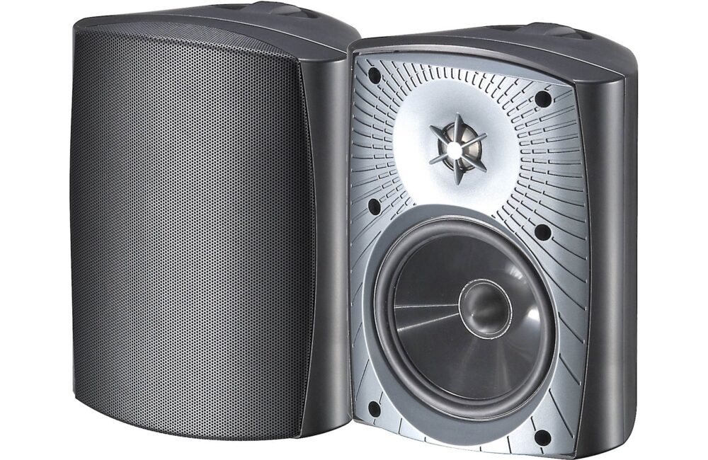 MartinLogan has produced indoor speakers of legendary quality for decades, so we expect nothing less from this pair of weather-resistant ML-55AW outdoor speakers. Each features a 5-1/2″ mineral-filled polypropylene woofer and a 1″ titanium tweeter for excellent musical fidelity. They handle up to 90 watts, so you can jam out at your next deck party.