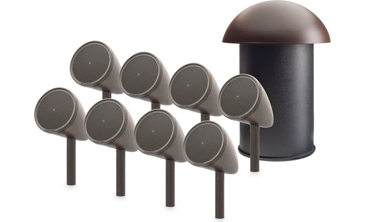 The MartinLogan Outdoor Living Foundation 8.1 System is versatile and weather-resistant — ideal for creating an immersive sound system for a large pool or patio (up to 3,000 feet). The system includes eight hardy satellite speakers that can be stake-mounted in the soil, plus a burial-rated 8″ subwoofer for deep, musical bass.