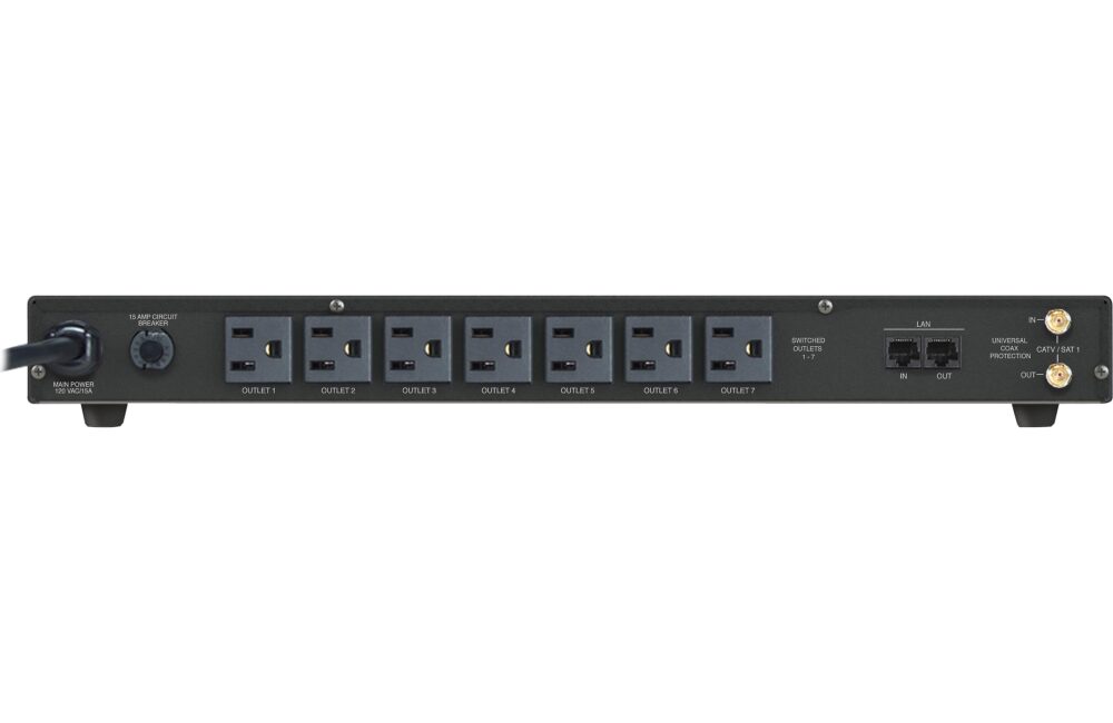 • total of 8 surge-protected, noise-filtered AC outlets — 7 rear, 1 front: