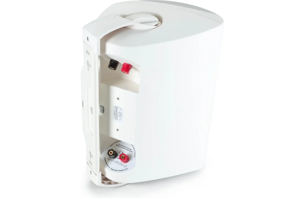 This stereo-input model is handy for outdoor spaces where mounting a pair of speakers would be an impractical fit. Instead, the Stylus 470-SM accepts both channels of the stereo music signal and reproduces them using a pair of angled tweeters and a dual-voice-coil woofer. The speaker’s enclosure is water- and UV-resistant to brave the elements, and its adjustable mounting bracket makes for a straightforward installation.