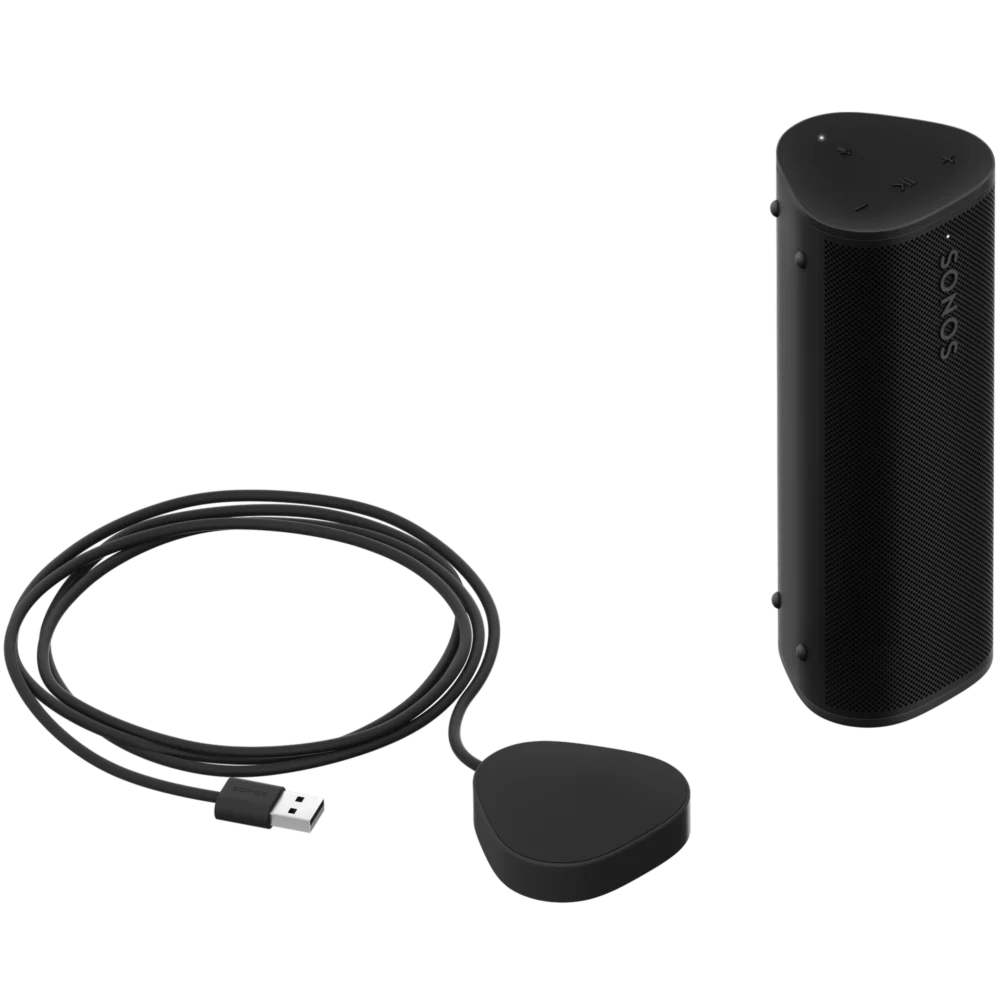 Stream all your favorite sounds at home and on the go with this ultra portable and durable speaker. Get up to 10 hours of non-stop listening. When the battery runs low, simply set Roam 2 on the custom-designed wireless charger. The custom design seamlessly fits the base of the speaker and features magnets for quick, hands-free attachment.