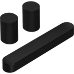Easy to set up with just two cables and help from the Sonos app, Beam (Gen 2) gives you more immersive home theater and music in minutes. Enjoy crystal clear dialogue, rich bass, and the realistic experience of spatial audio with Dolby Atmos.1 Go further into every scene and song when you add the pair of Era 100 speakers to Beam over WiFi. Enjoy streamlined control with your TV remote, and stream all your favorite audio content with the Sonos app and your voice.2