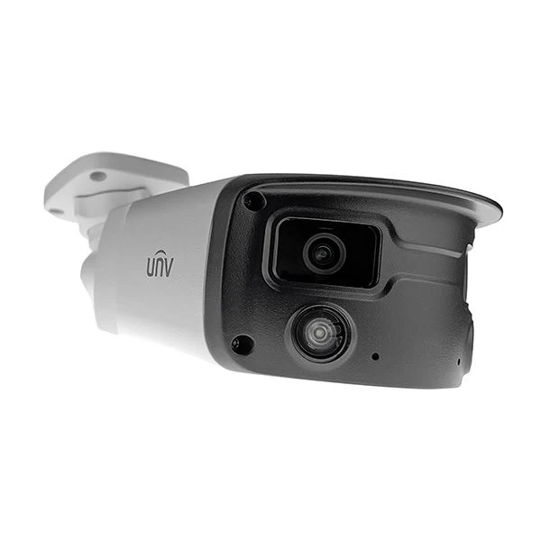 Meet Uniview’s wide angle bullet with two 4mm 8MP 4K UltraHD lenses with ColorHunter illumination and deep learning AI! This camera splices images together from two separate lenses to create an ultra-wide 180° horizontal field of view. The splicing is seamless, so you won’t even notice a gap. The splicing is also configurable, so you can add or remove 10° if you need to dial it in even more.